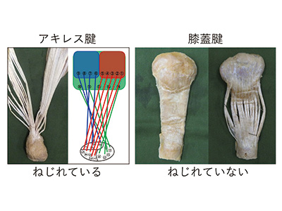 「解剖実験などから得られた分析で、アキレス腱のねじれ構造には軽度・中等度・重度の3タイプがあることがわかりました。腱の硬さなど、さまざまな力学的特性を調べたところ、軽度・重度のねじれでは障害が発生しやすく、中等度のねじれでは、どの方向に動かしてもストレスがかかりにくい構造がわかりました」